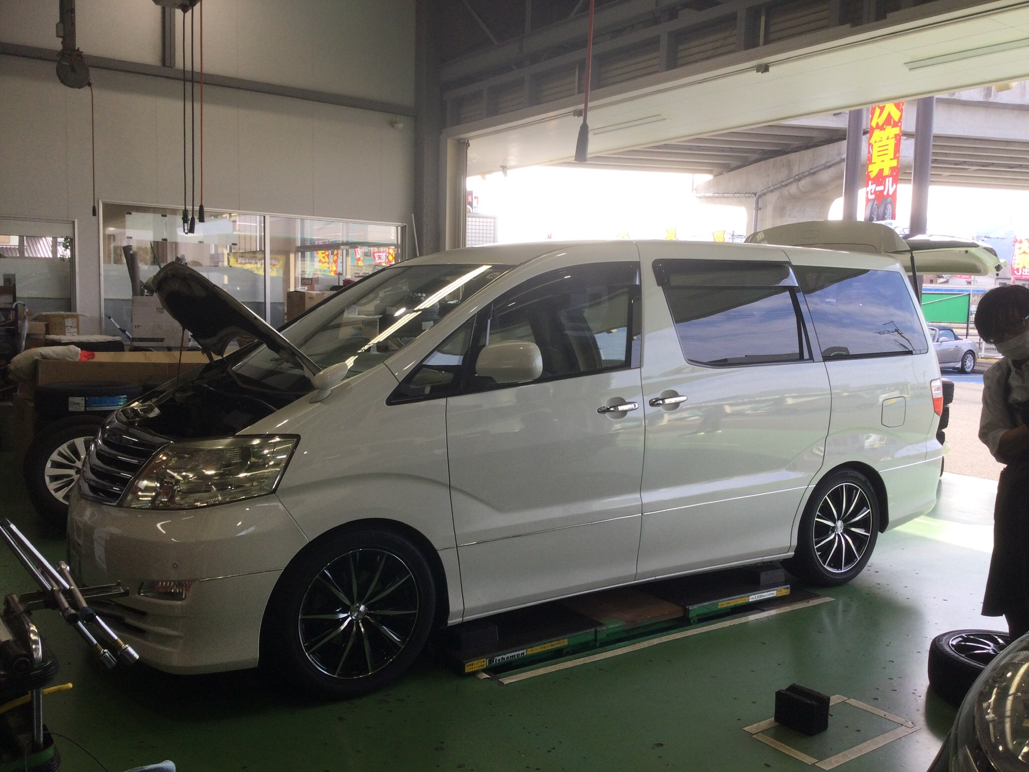 アルファードに車高調 タイヤ アルミセット取り付けました オートバックス都岡店